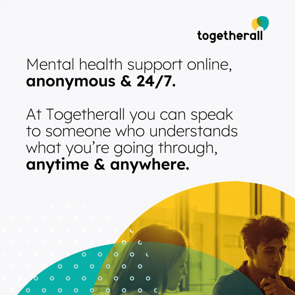 Togetherall is a digital mental health and wellbeing support service, available online, 24/7. This online community is completely anonymous so you can express yourself freely and openly. Professionally-trained Wall Guides monitor the community to ensure the safety and anonymity of all members.